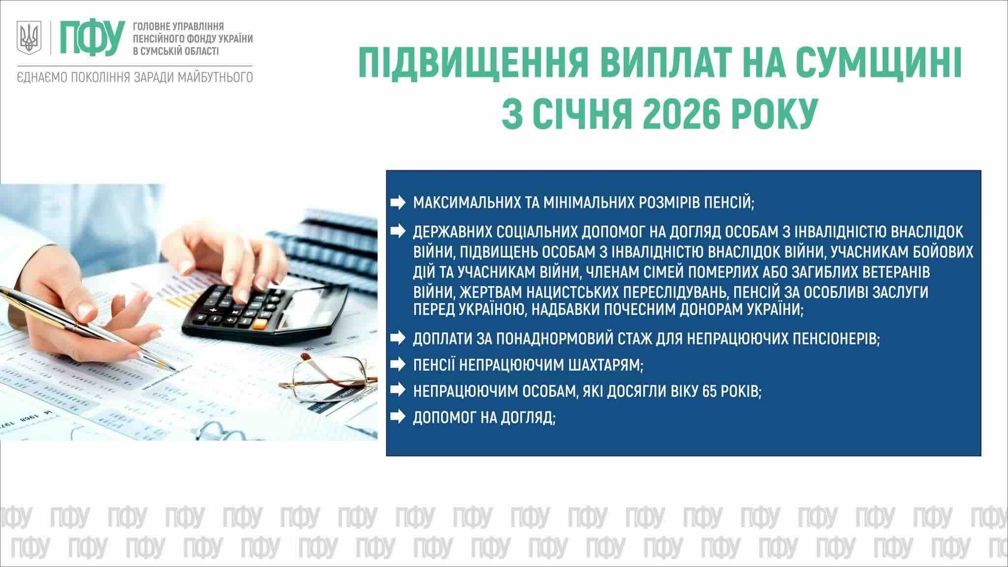 «Ми працюємо для вас, тому головна новина — йти до відділень та стояти в чергах не потрібно. Перерахунок проведено автоматично!» — наголошують у Головному управлінні ПФУ в Сумській області.