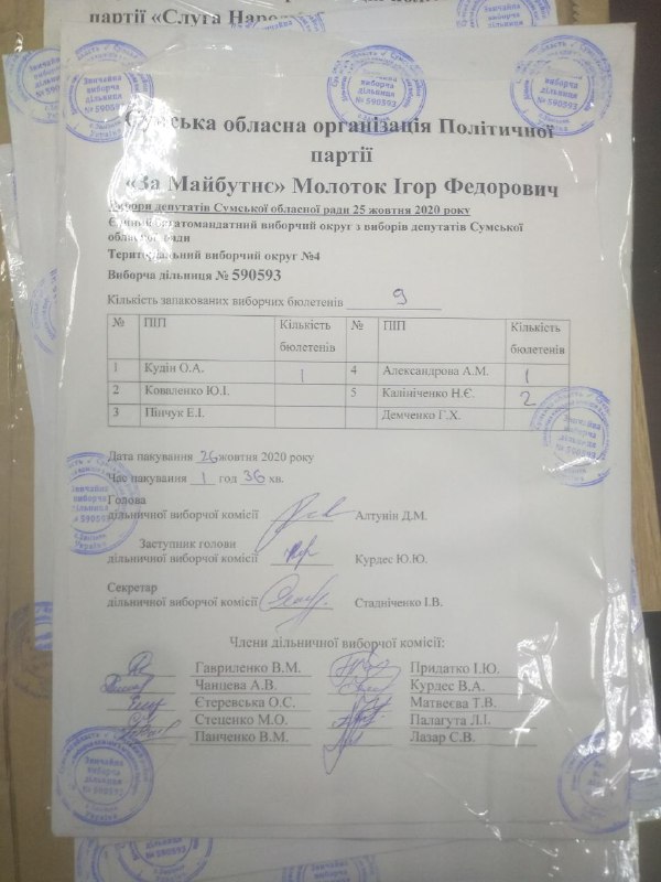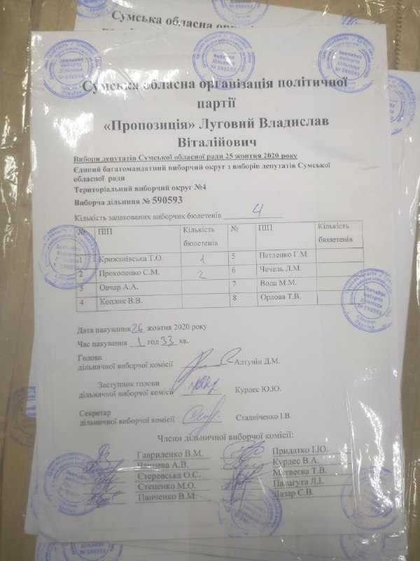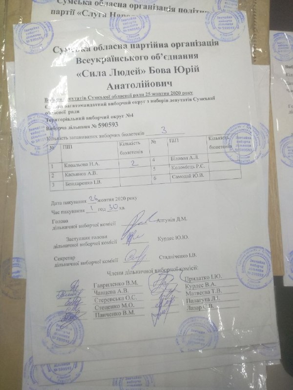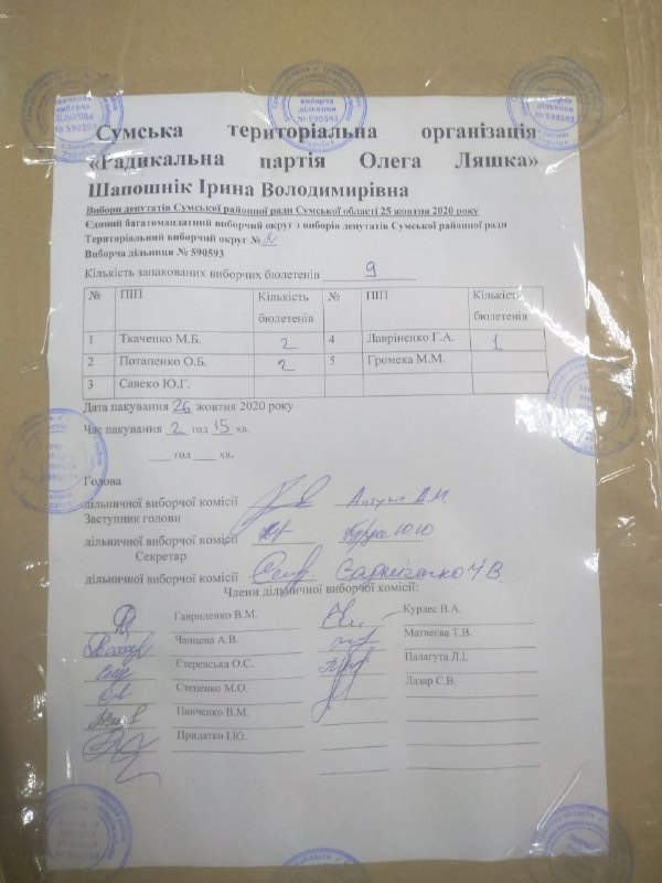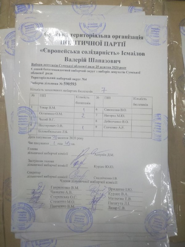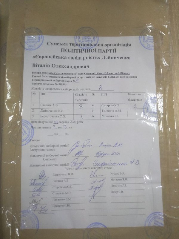 Нагадаємо, що відповідно до частин 37-39 статті 250 Виборчого кодексу України, виборчі бюлетені з голосами виборців, поданими за кожного з кандидатів у депутати, включених до територіального виборчого списку кожної організації партії, запаковуються у пакети. На пакеті зазначаються назва місцевих виборів, номер територіального виборчого округу, номер виборчої дільниці, назва організації партії, прізвище кандидата та його порядковий номер у територіальному виборчому списку організації партії, кількість запакованих виборчих бюлетенів, дата і час пакування, ставляться підписи присутніх членів дільничної виборчої комісії та печатка комісії. У той же час, виборчі бюлетені з голосами виборців, які підтримали увесь територіальний виборчий список від організації партії, не підтримавши окремого кандидата у депутати, запаковуються у пакет. На пакеті зазначаються назва місцевих виборів, номер територіального виборчого округу, номер виборчої дільниці, назва організації партії, кількість запакованих виборчих бюлетенів, дата і час пакування, ставляться підписи присутніх членів дільничної виборчої комісії та печатка комісії. Пакети з цими виборчими бюлетенями, з голосами виборців, які підтримали територіальний виборчий список кожної організації партії, запаковуються в один паперовий пакет. На пакеті зазначаються назва місцевих виборів, номер територіального виборчого округу, номер виборчої дільниці, назва відповідної організації партії, кількість запакованих виборчих бюлетенів, дата і час пакування, ставляться підписи присутніх членів дільничної виборчої комісії та печатка комісії.