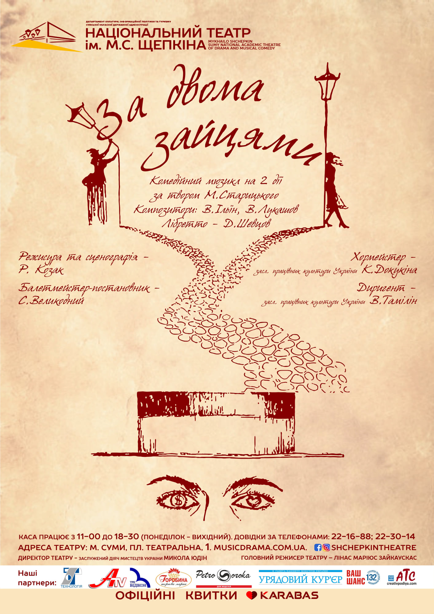 Незабаром Національний театр ім. М.С. Щепкіна покаже прем’єру. Комедійний мюзикл «За двома зайцями» — це яскраве сучасне динамічне видовище з елементами сатиричного гротеску. Дії та репліки персонажів сповнені невідпорного гумору та саркастичних фарб.