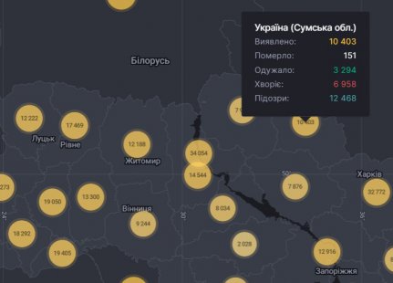 Станом на ранок 25 жовтня у Сумській області зафіксовано 10 403 випадки коронавірусу, за минулу добу виявлено 291 випадок. Про це свідчать дані моніторингу поширення COVID-19 від РНБО.